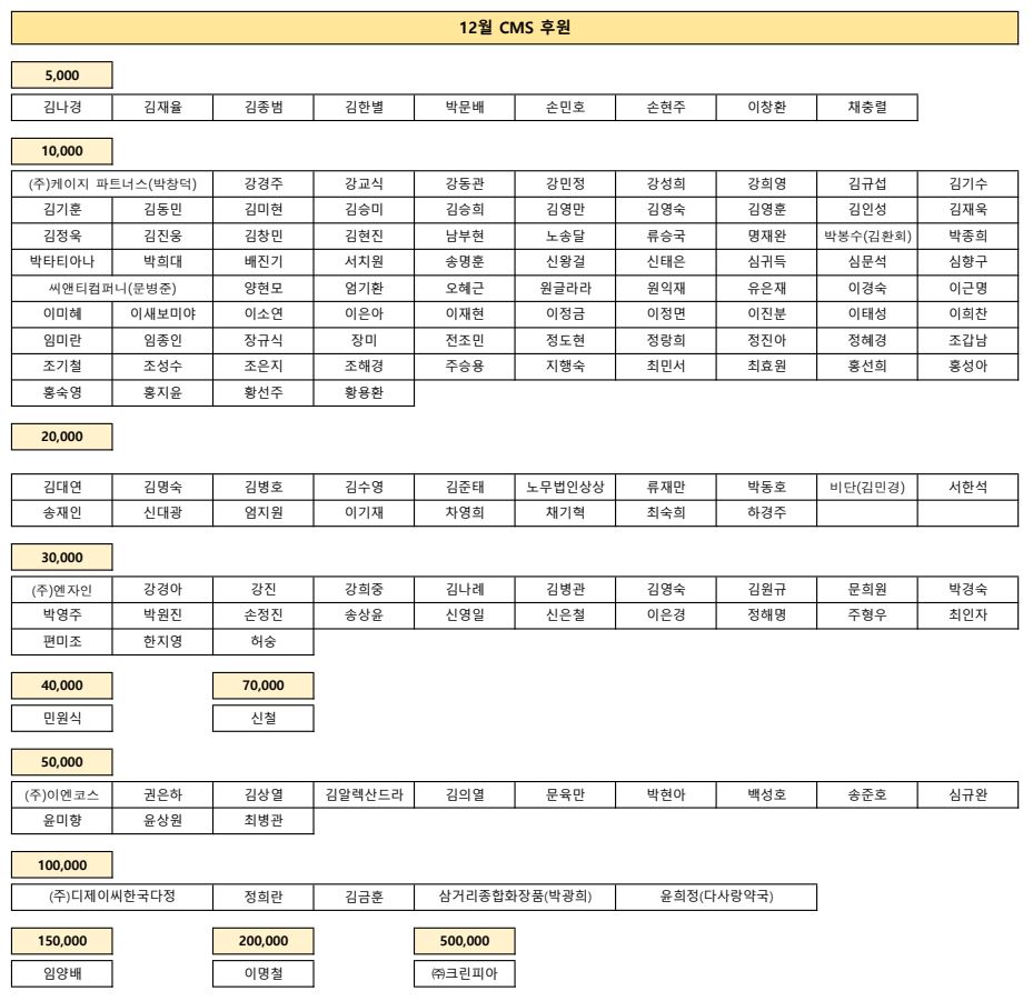 2025년 12월 후원 고맙습니다